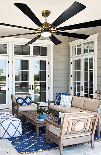 Installation of weather-rated ceiling fans for patios, verandas, and other outdoor spaces, designed to withstand the elements.