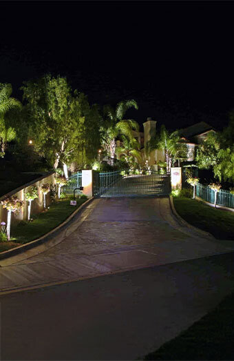 Expert installation of weatherproof outdoor lighting for security, entertainment or landscape enhancement including spike lights and feature lighting.